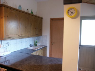 A self contained flat or office area. The kitchen area has plenty of light with a window looking onto gardens, modern coloured units built in. To the right through single wood door there is a bathroom with large shower and built in vanity sink unit also a toilet, with a high level window for ventilation. To the left there is access to bed sit area with plenty of room for a double bed. |